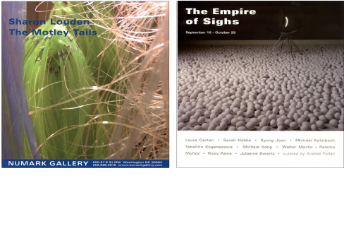 . Template design and formatting for contemporary art exhibit invitations. Second of two: invitations for Sharon Louden exhibit and a group show called "The Empire of Sighs".