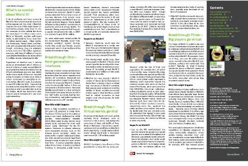 Social Technologies. Change)Waves quarterly newsletter on the future of consumer life, business and technology. Second of three: spread from the summer 2008 issue, "Future Breakthroughs in Virtual Worlds." Pdf of this issue. Pdf of Winter 2008 issue.
