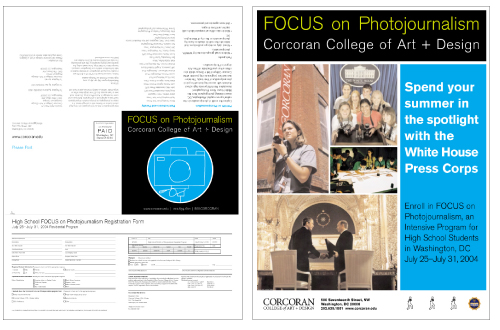 Corcoran College of Art + Design. Series of self-mailing posters to promote programs for high school students. First of three: Focus on Photojournalism.